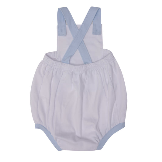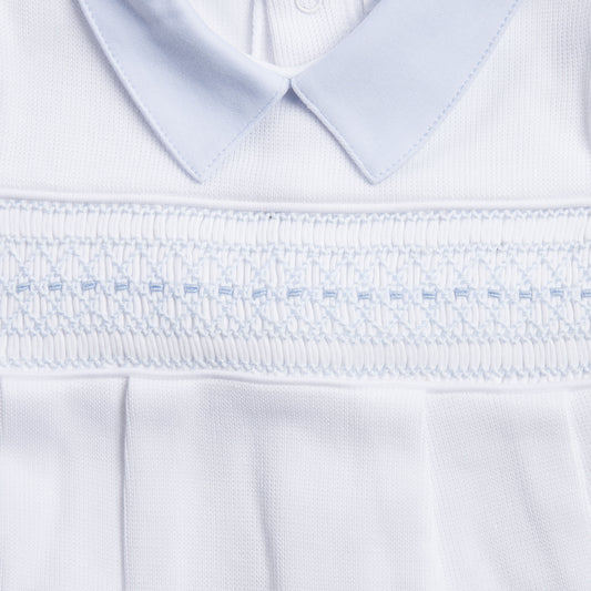 Macacão Longo Branco Smock Clássico Azul Ponto Inglês em Algodão Pima Peruano