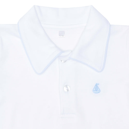 Camisa Polo Branca com Detalhe Azul em Algodão Pima Peruano