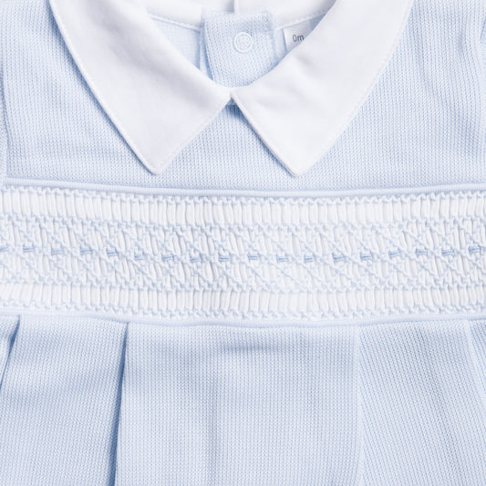 Macacão Longo Azul Smock Clássico Ponto Inglês em Algodão Pima Peruano