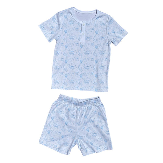 Pijama Curto Estampa Ursinho e Balões Azul em Algodão Pima Peruano