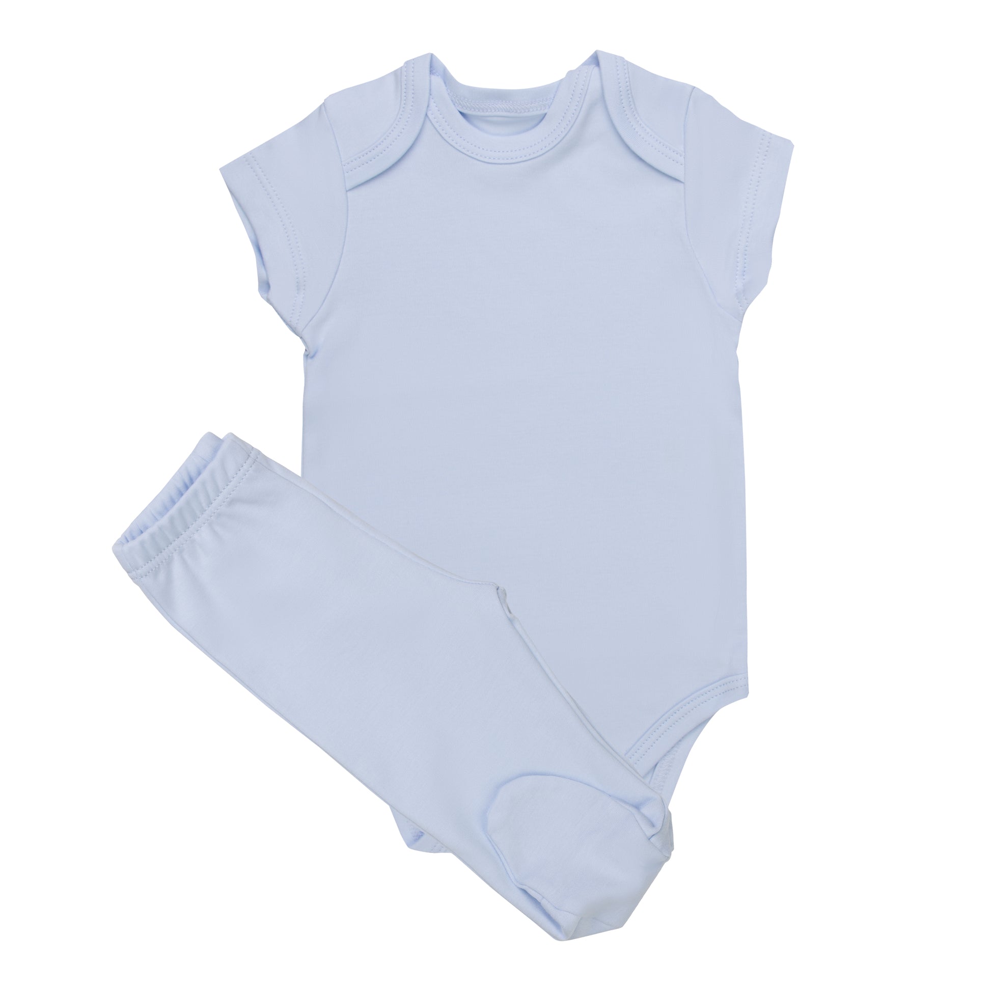 Body Manga Curta e culote azul em Algodão Pima Peruano