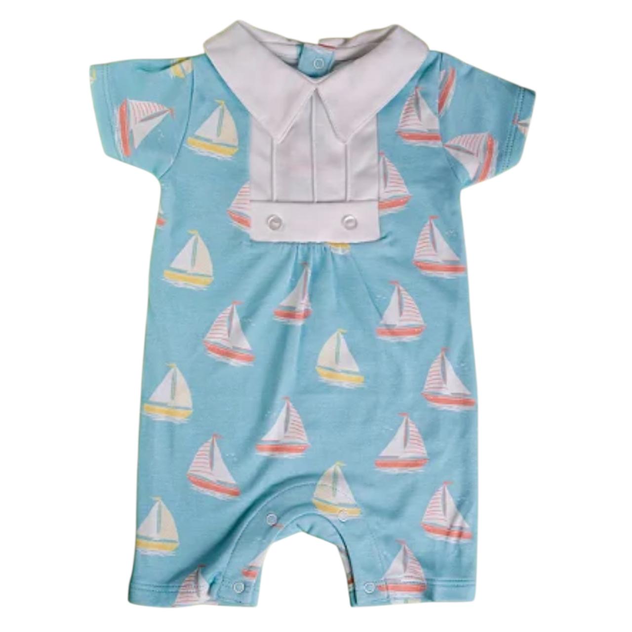 Macacão Curto Barco Colorido em Algodão Pima Peruano