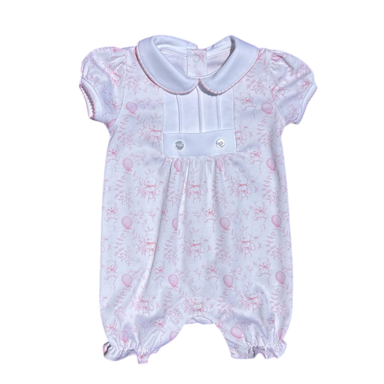 Macacão Curto Botões Balão Rosa em Algodão Pima Peruano