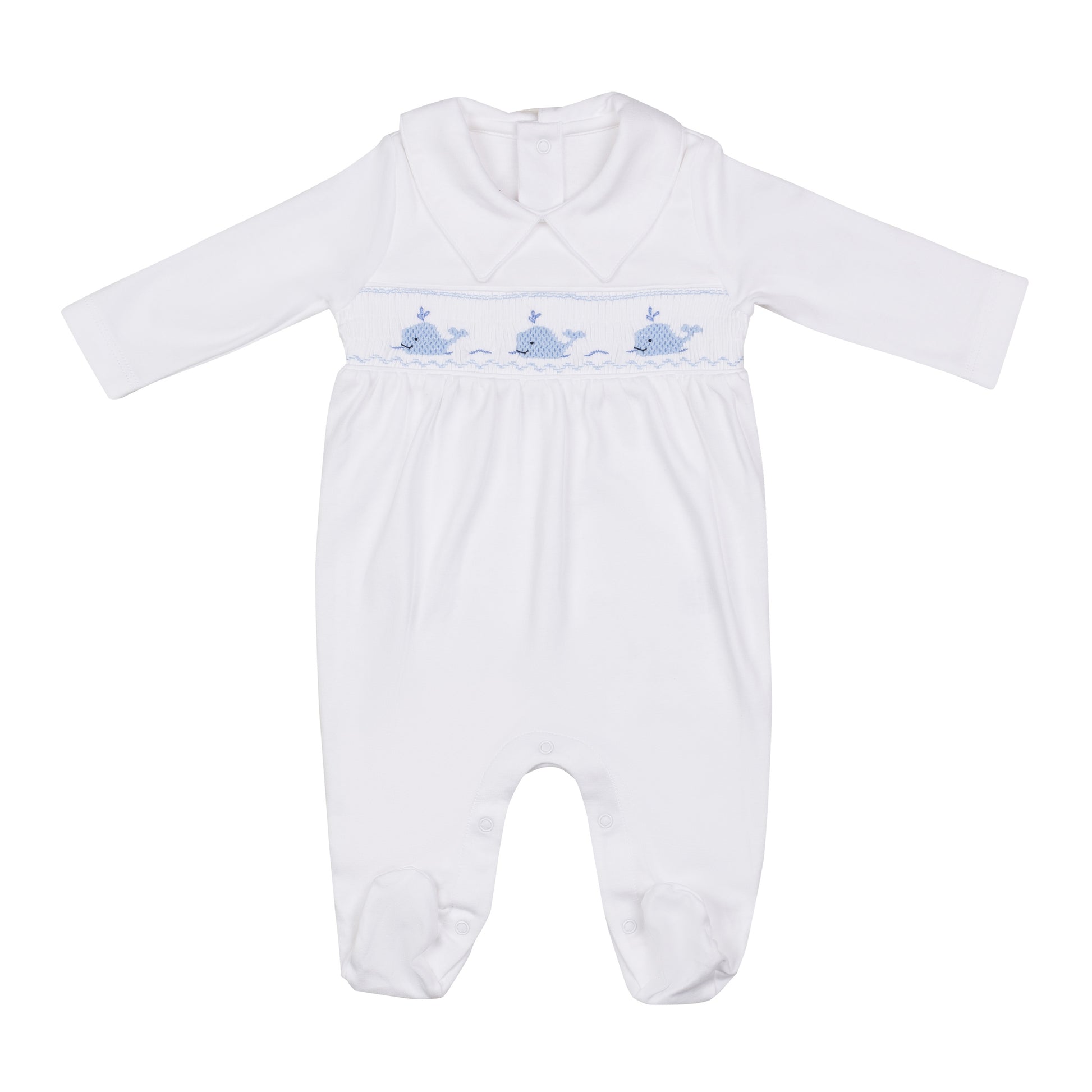 Macacão Longo Branco Smock Baleia em Algodão Pima Peruano