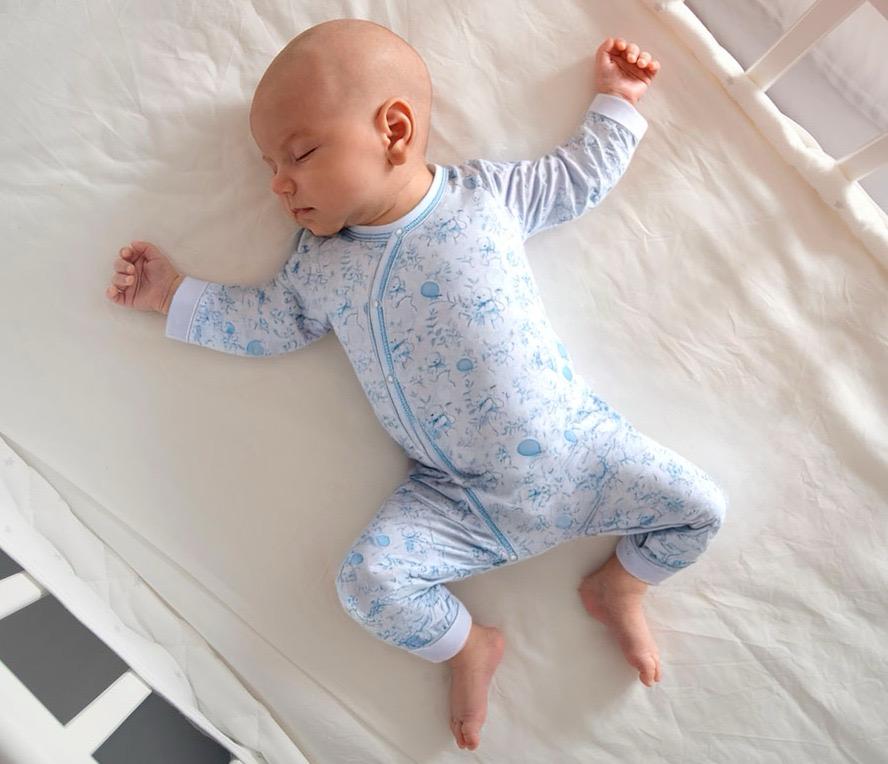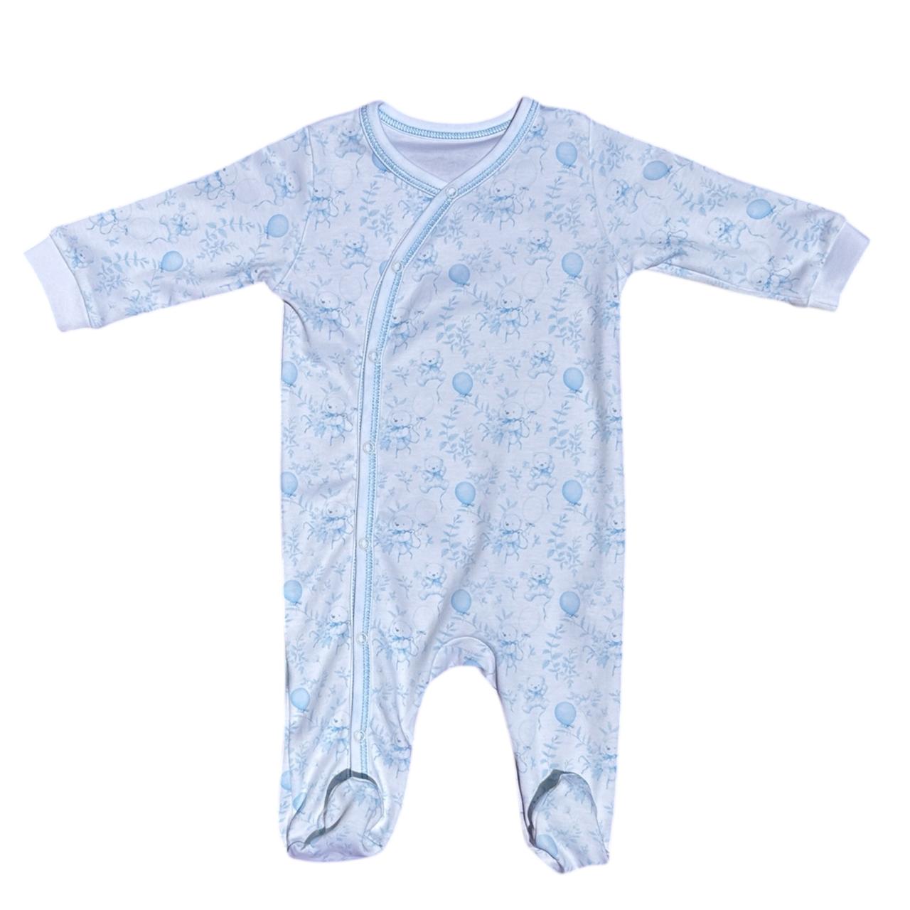 Macacão Longo Viés Balões Azul em Algodão Pima Peruano